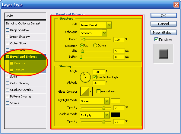 روی Bevel and emboss کلیک کن و تنظیمات رو این ور و اون ور کن تا اونی که می خوای درآد.