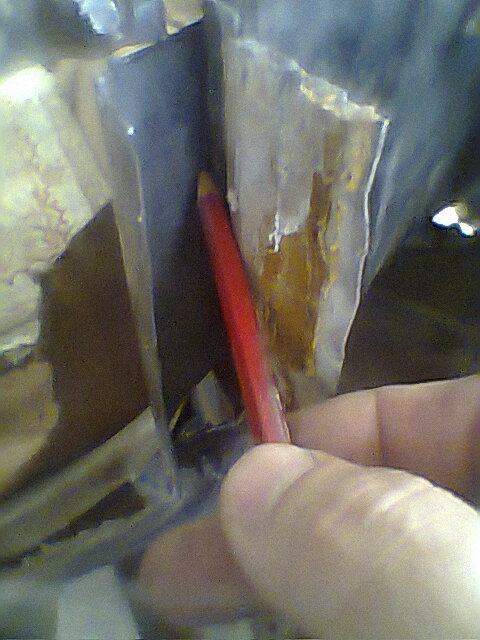 در اینجا مقدار مورد نیاز تغییر در این بخش از دیواره فلزی کانال بخاری دیده میشود که بطور تقریبی باید در امتداد طول مداد جابجا شده و فضای بیشتری را برای این طرح جدید بوجود آورد.