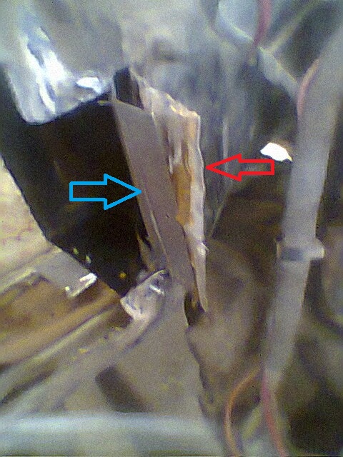 فلش قرمز فایروال برش خورده، فلش آبی دیواره فلزی ادامه کانال بخاری که قبلا برش خورده بود، در کنار هم ، که قرار است قسمتی از کانال خروجی جریان هوا بخاری را تشکیل دهند.