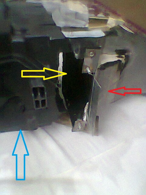این رگلاژ مجدد چندین بار انجام شد و در نهایت به شکل زیر درآمد. محل نشان داده شده با فلش قرمز، مکان قبلی نصب وکیوم دریچه تنظیم کننده جریان هوای کولر و بخاری بود که عملا با یک مکانیزم نسبتا پیچیده،دو دریچه را نسبت به هم تنظیم کرده و جریانهای هوای لازم برای بخاری و کولر را تامین میکردند.