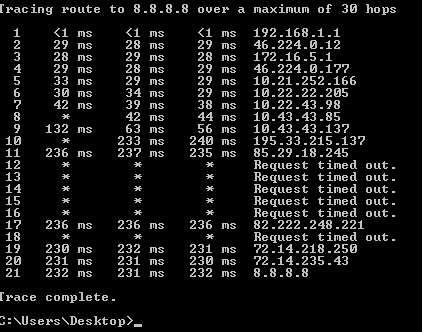 سلام دوست عزیز میتونید بدون قند شکن یه tracert -d 8.8.8.8بگذارید باتشکر