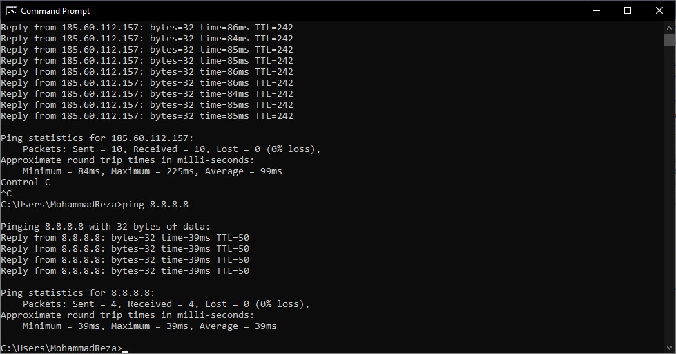 شما رو وایفای 2.4 ک نیستید؟اگر امکانشو دارید با دستور Tracert تو همون کامند ی سروری رو بعدش وارد کنید تا مشخص شه مشکل از کجاست مثلا tracert 162.159.192.1