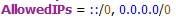 همینطور Allowedips هم باید بهش یه ::/0 دقیقا عین این شکلو بازم گفتم با یه , باید ایپی هارو جدا کنید