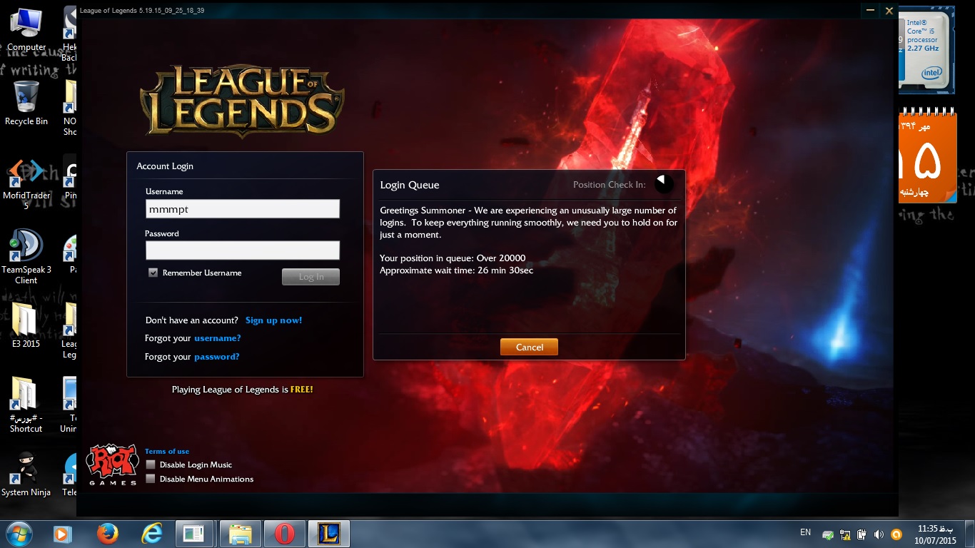 تازه آن بودم دیدم تو بازی هستی log off کردم الان خواستم دوباره لوگین کنم که اینطوری شد.کاش نمیبستم بازیو :/