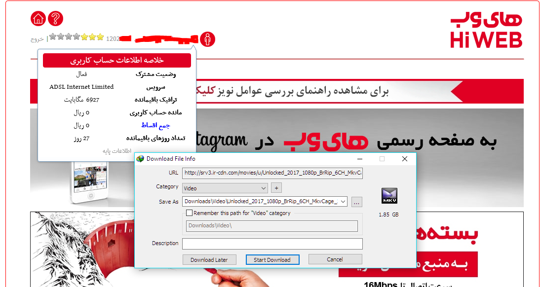 نام تاپيک: ADSL Hiweb / شرکت های وب
