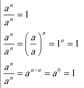 n^0=n^m ÷ n^m = (n / n)^m = 1