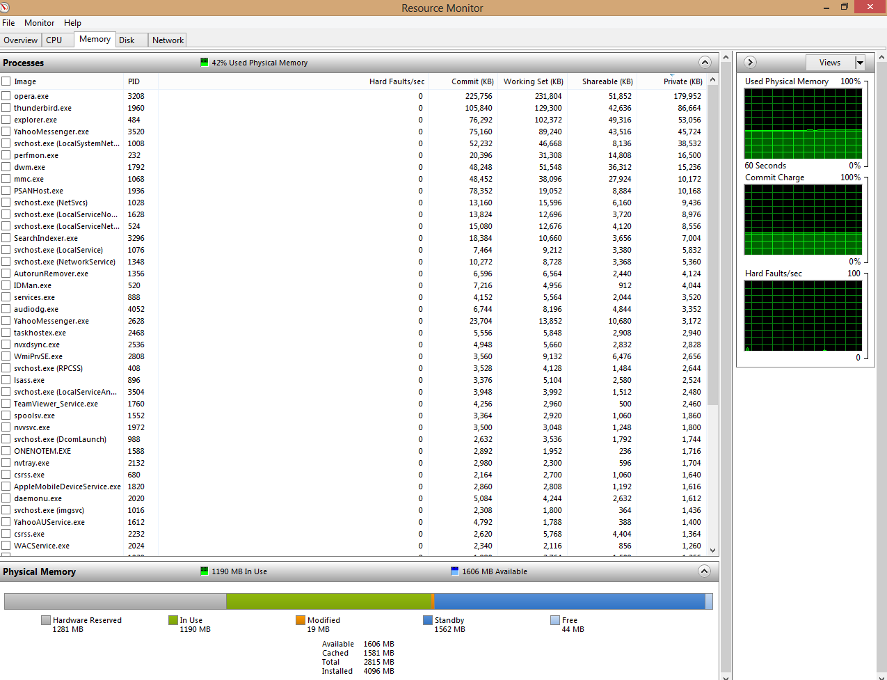 شما در start در قسمت سرچ تایپ کنید resource monitor در قسمت رم ببینید چقدر به hardware رم اختصاص داده شده ؟