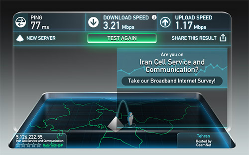 من قبل عید از سرور مشخص با 3G میانگین سرعت 1.5 تا 2 مگابایت در ثانیه دانلود می کردم که دیشب میانگین سرعت دانلود 1 مگابایت در ثانیه کمتر بود ! در طی 6 ساعت 18 گیگابایت دانلود کردم .