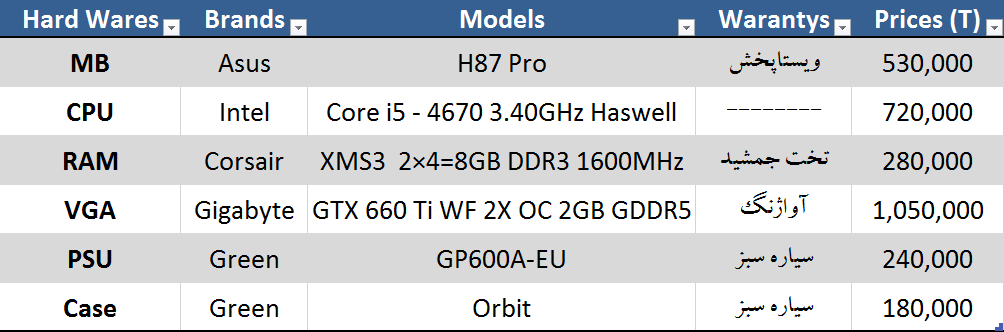 کلا شد 3404000تومن. سی پی یو گارانتی نداره البته با در نظر گرفتن اینکه ما در ایران زندگی میکنیم,مشکلی نداره؟ ایا این سیستم تا 4سال دیگه برای بازی مناسبه؟ سایت معتبره؟