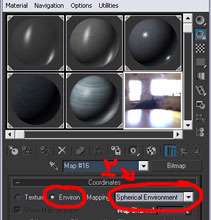 در قسمتCoordinates گزینهEnviron را زده و در قسمتmapping گزینهSpherical Environment را انتخاب کنید. انتخاب این گزینه باعث کروی شدنmap مورد نظر می شود.