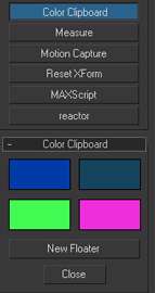 به کمک این برنامه شما می توانید رنگ موردنظر خود را ذخیره نموده و دوباره استفاده نمایید به این صورت که شما یک material دارید و می خواهید این ماده خود را از بین برده یاReset Map کنید در این صورت رنگ شما از بین خواهد رفت شما می توانید قبل از استفاده ازReset Map رنگ خود را کشیده و بر روی یکی از رنگهایColor Clipboard رها کنید به این صورت رنگ شما حفظ خواهد شد و برای استفاده دوباره بر روی رنگ برنامه کمکی رفته و آن را کشیده و بر روی ماده رها کنید.