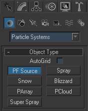 2)از منوی Geometry < Create Particle Systems < گزینهPF Source را بزنید و در نمایی پرسپکتیوDrag کنید و یک سیستم ذره ایParticle Flowایجاد نمایید.