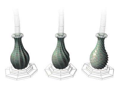 Twist : به كمك این تغییر دهنده می توانیم در شی پیچش را ایجاد نماییم . به پارامترهای این تغییر دهنده متوجه نمایید