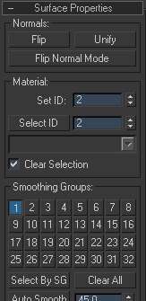 SurFace properties : در این قسمت شما می توانیدFace ها را ویرایش و تغییر دهید و جهت نرمال ها را تعیین نمایید و همچنین نوع گروه های هموار سازی را تعیین نمایید .
