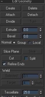 Tessellate : به كمك این گزینه می توانید بصورت سنگهای چهار گوش كوچك قسمت های منتخب را در بیاورید وFace های انتخابی را به تعداد بیشتری تقسیم نمایید . یعنی اگر یكFace را انتخاب نمودید با زدن این گزینه آنFace به چهار قسمت تقسیم می شود.