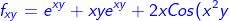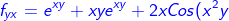 مشتقات f_x و f_y شما درست نیستند. از e به توان xy هم مشتق جزئی بگیرید.