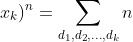'که مجموع روی همه d_i های صحیح نامنفی است که مجموعشان n است.و: