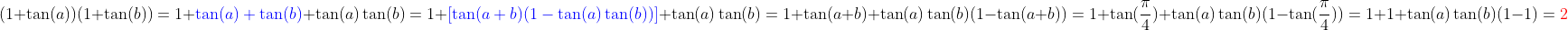 طبق فرمول تانژانت حاصل جمع (که خود همین هم قابل اثبات هست) داریم: