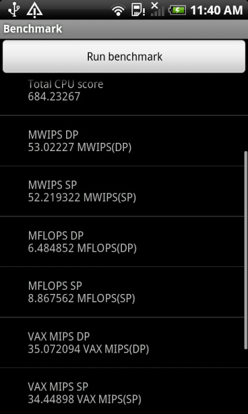 Benchmark test shows that the Motorola Shadow is faster than the Samsung Galaxy S?