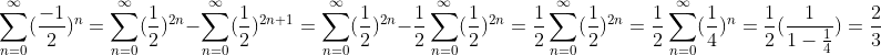 در اینجا من در حقیقت اومدم و جملات مثبت رو با هم جمع کردم و جملات منفی رو هم با هم. سپس نشون دادم که قدر مطلق مجموع جملات منفی، نصف مجموع جملات مثبته. پس حاصل کل برابر میشه با نصف مجموع جملات مثبت.![]()