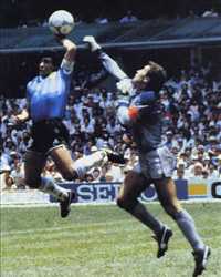 اما چه كسي است كه نداند اين گل با دست او بود كه بيش از شاهكار تكنيكياش به او لذت داد، مارادونا در توصيف اين گل ميگويد:« من جيب انگليسيها را زدم»... و اين يك انتقام بينظير از انگليسيهايي بود كه در جنگ فاركلند هموطنان ديهگو را كشته بودند. مارادونا بعداً در توصيف اين گل گفت كه اين دست وي نبود كه توپ را وارد دروازه كرده، كه دست خدا بوده است ...