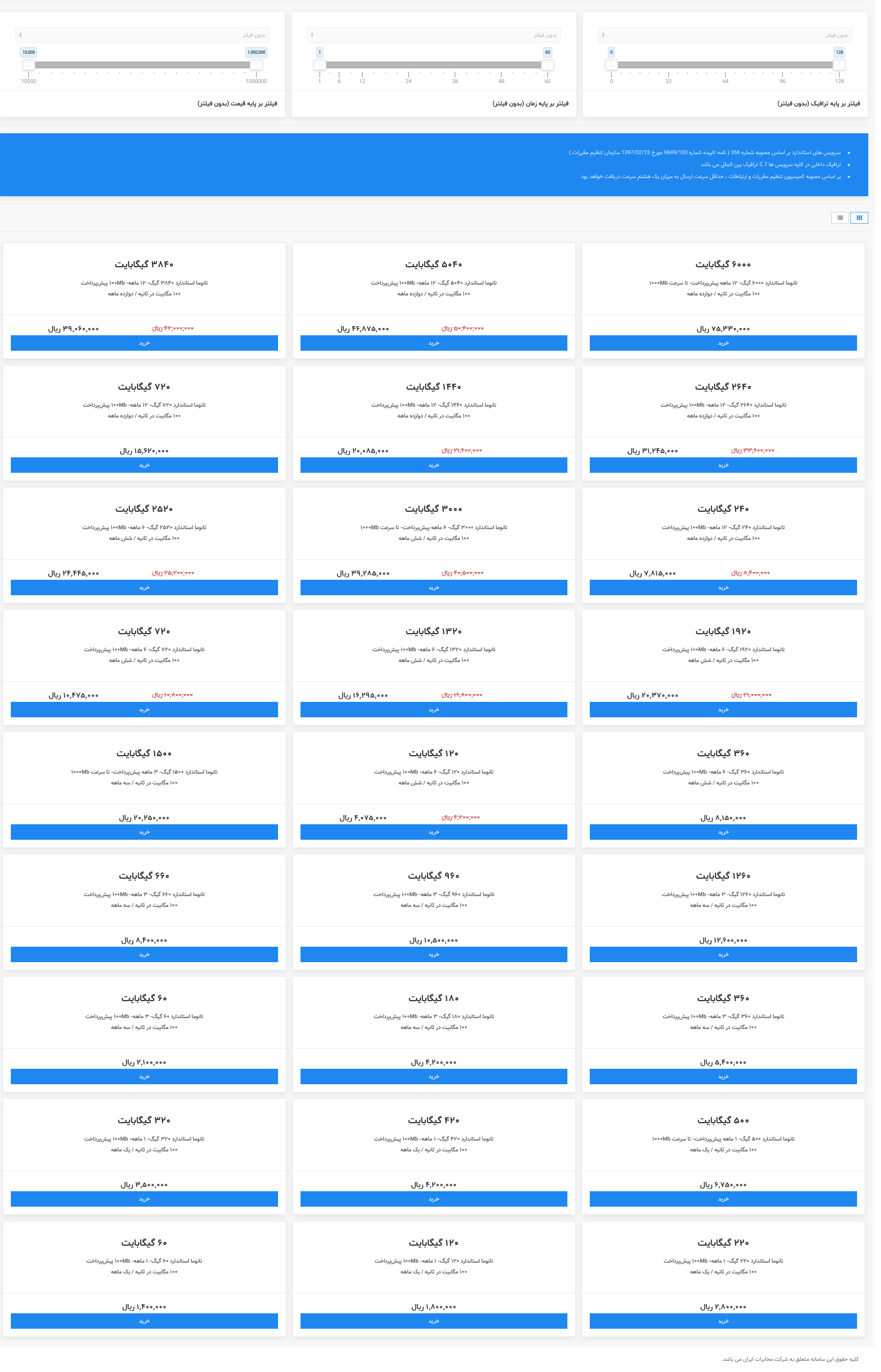 تعرفه ها از خود پنل مخابرات ، فقط یک سری تعرفه های حالت پس پرداخت با سرعت 300 در این لیست نیست ، یک تعرفه 20 گیگ سرعت 100 ماهی 70 تومن هم در این لیست نیست: