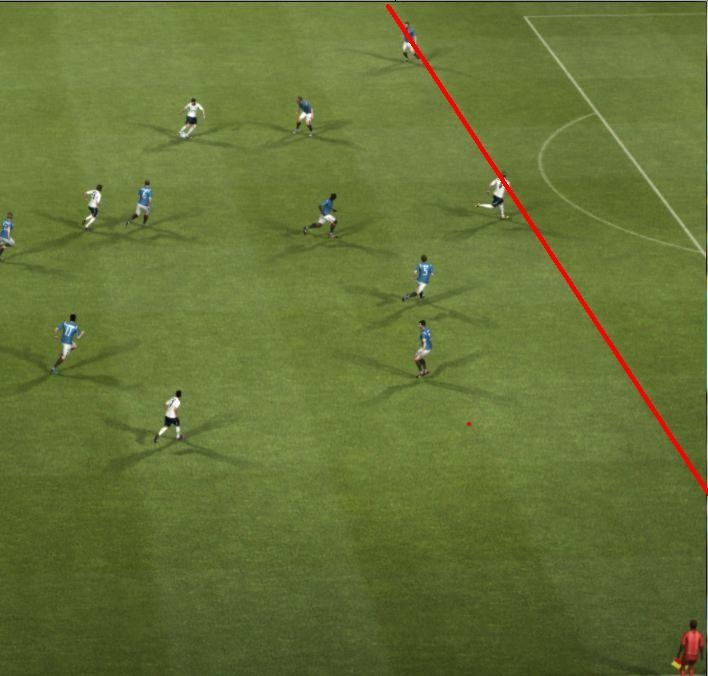 اگه به خط چمن دقت کنی میفهمی که مهاجم با مدافع در یک خط قرار دارند .