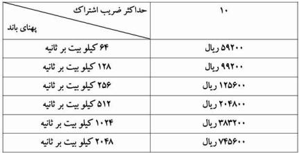بنابراين، تعرفه واگذاري اينترنت پرسرعت با استفاده از ADSL براساس پهناي باند و ضريب اشتراک حداکثر 10 بر اساس جدول زير تصويب شد: