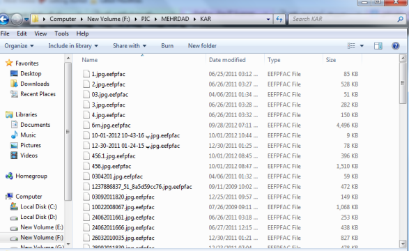 دوستان پسوند eefpfac به تمام فایل هام اضافه شده و هیچ فایل رو نمایش نمیده