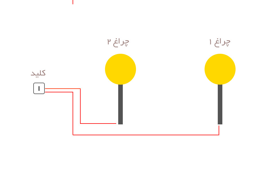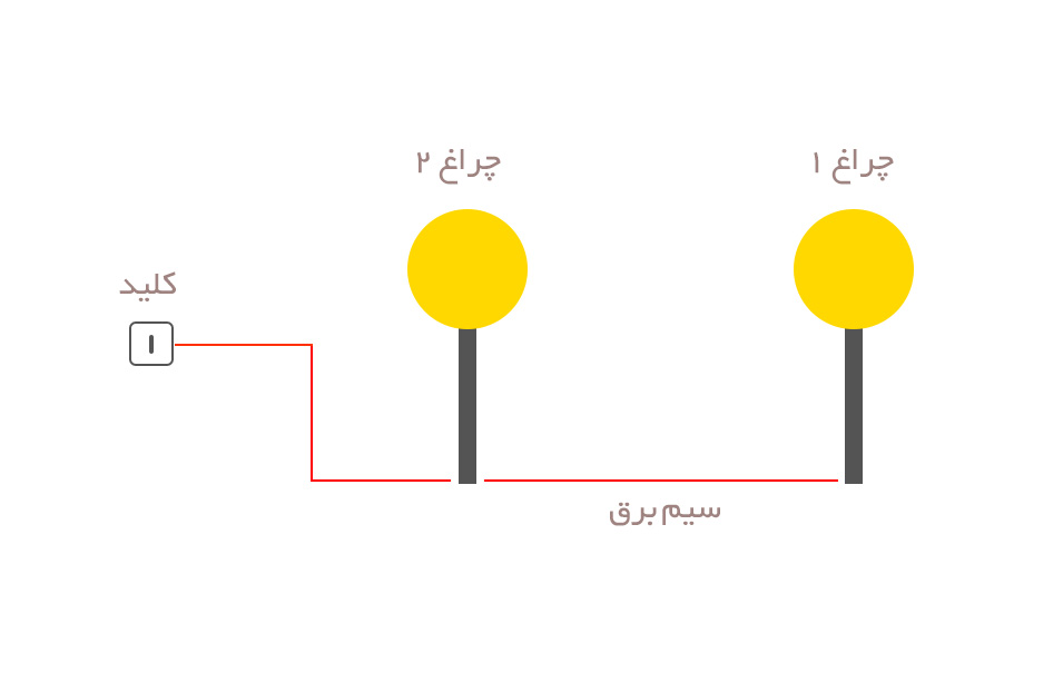 از کلید تا لامپ دوم کابل رو بکشید بعد از لامپ اول یک سیم به کابل اصلی پیوند بزنید